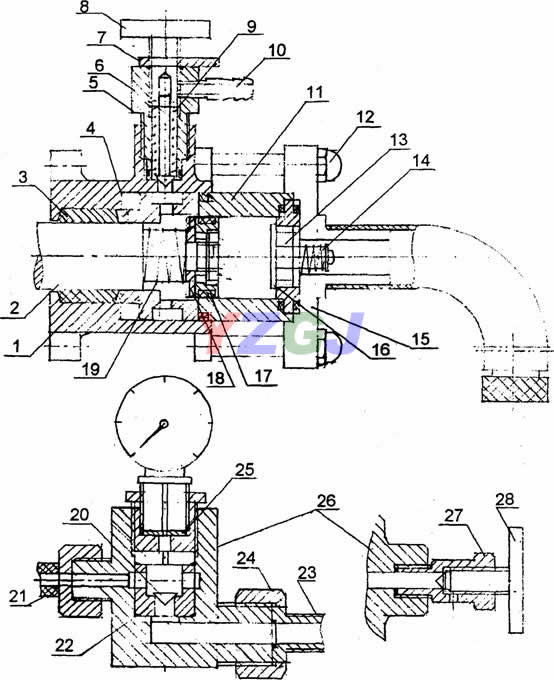 22、止回阀座 23、联接螺丝 24、联接螺母 25、阻尼垫