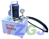 电动试压泵由电机驱动进行工作,该机由机体、开关、压力表、水箱、电机等组成。